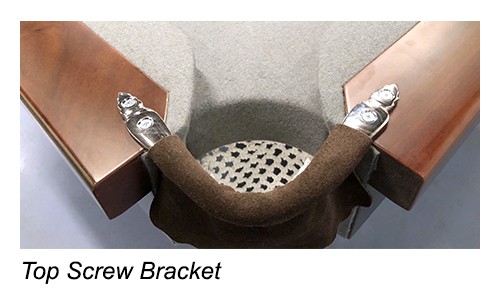- Solid brackets - screwed up from the bottom.