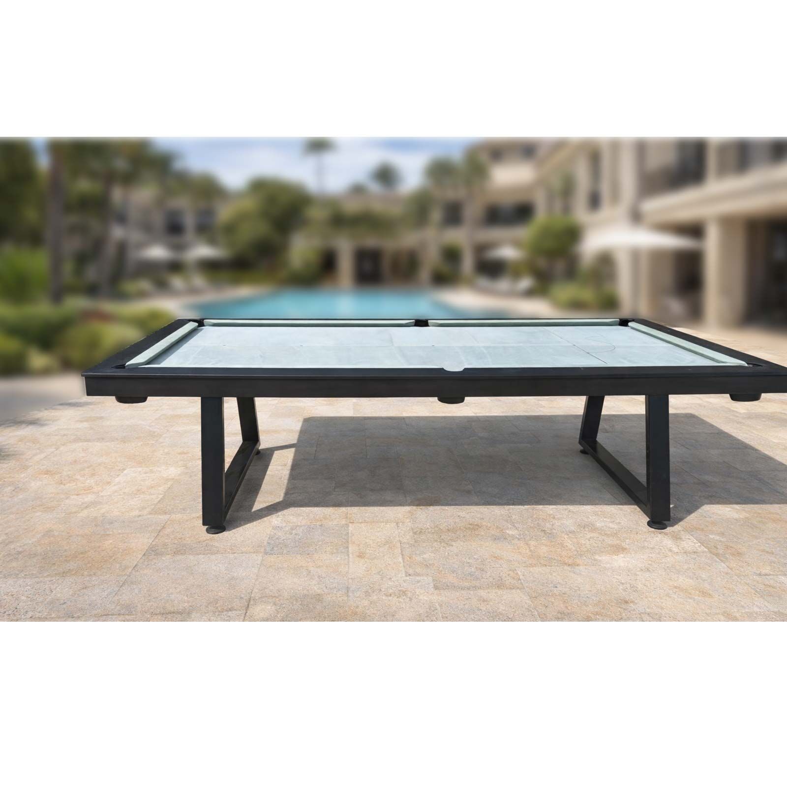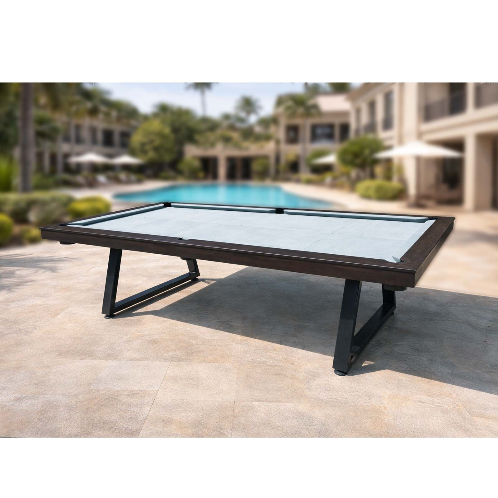 PRE-MADE 9ft Indoor/Outdoor SLATE SAGA Billiard Table, Merbau Timber, VanGuard cloth