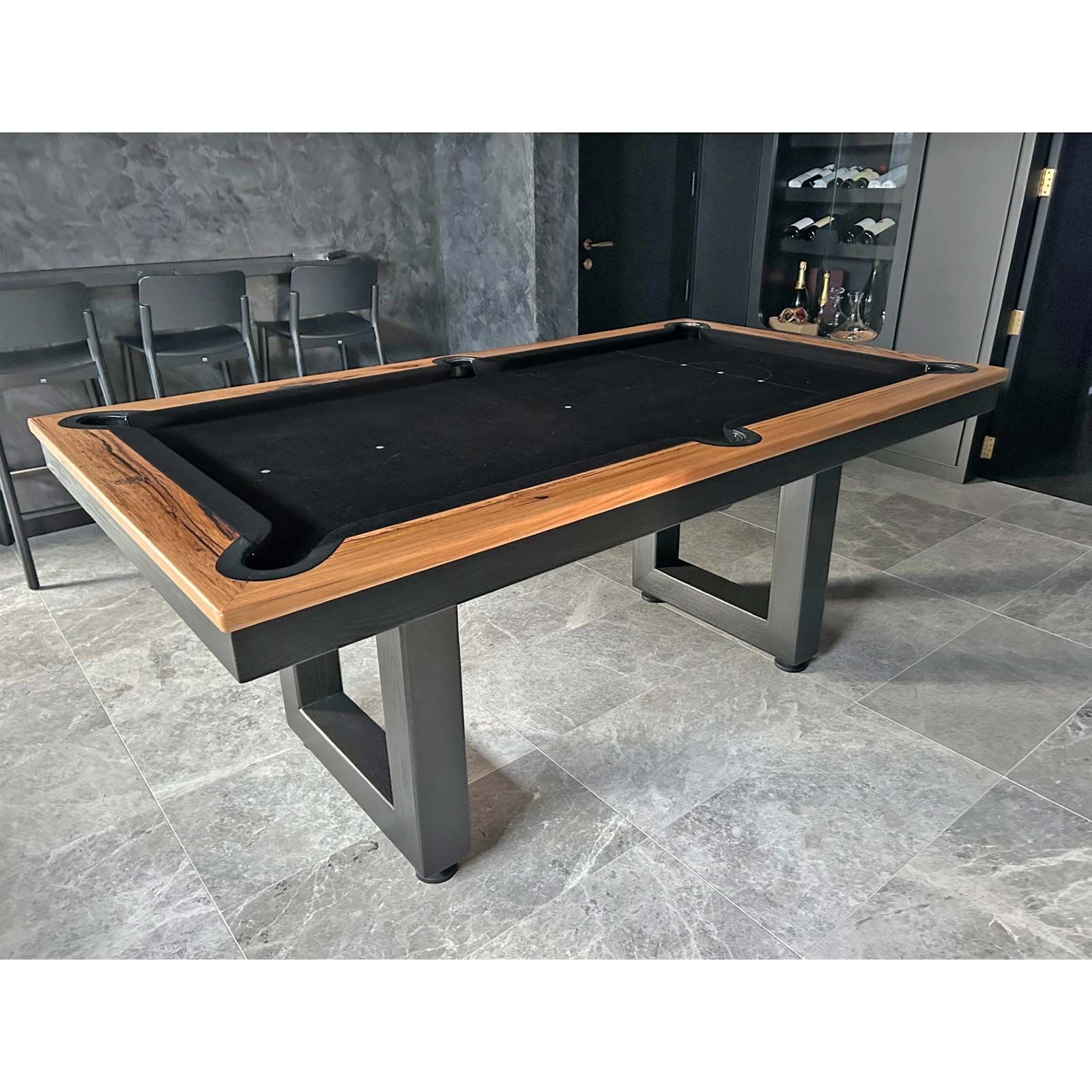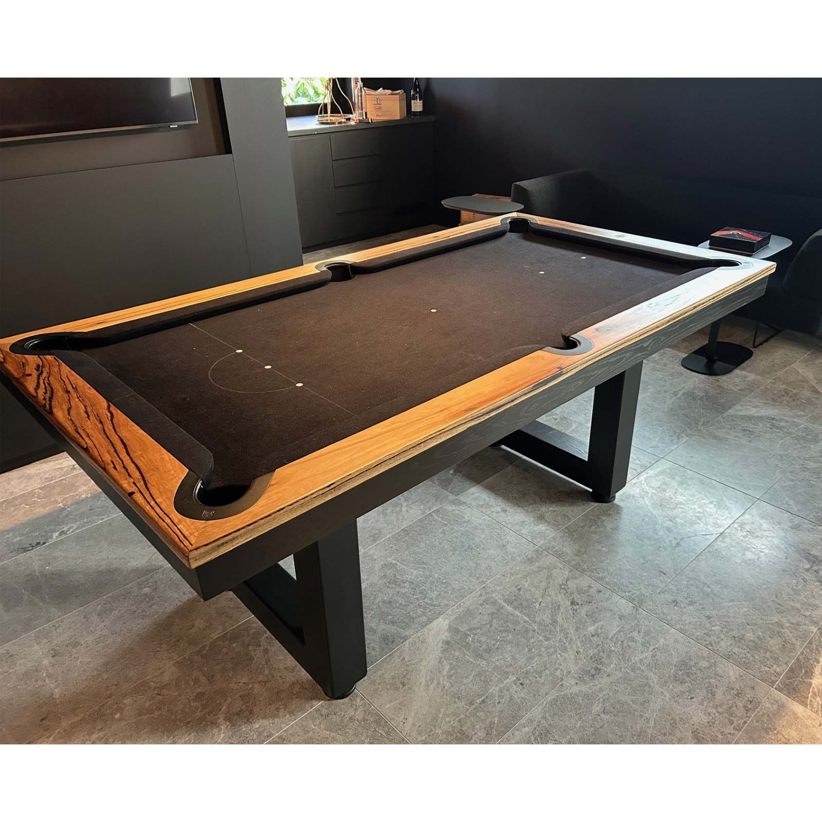 Continued change and evolution have created this fine-line table. Modern, unique, understated in design but gives complete pool game satisfaction at the same time, being a piece of furniture, avant-garde, imaginatively created.