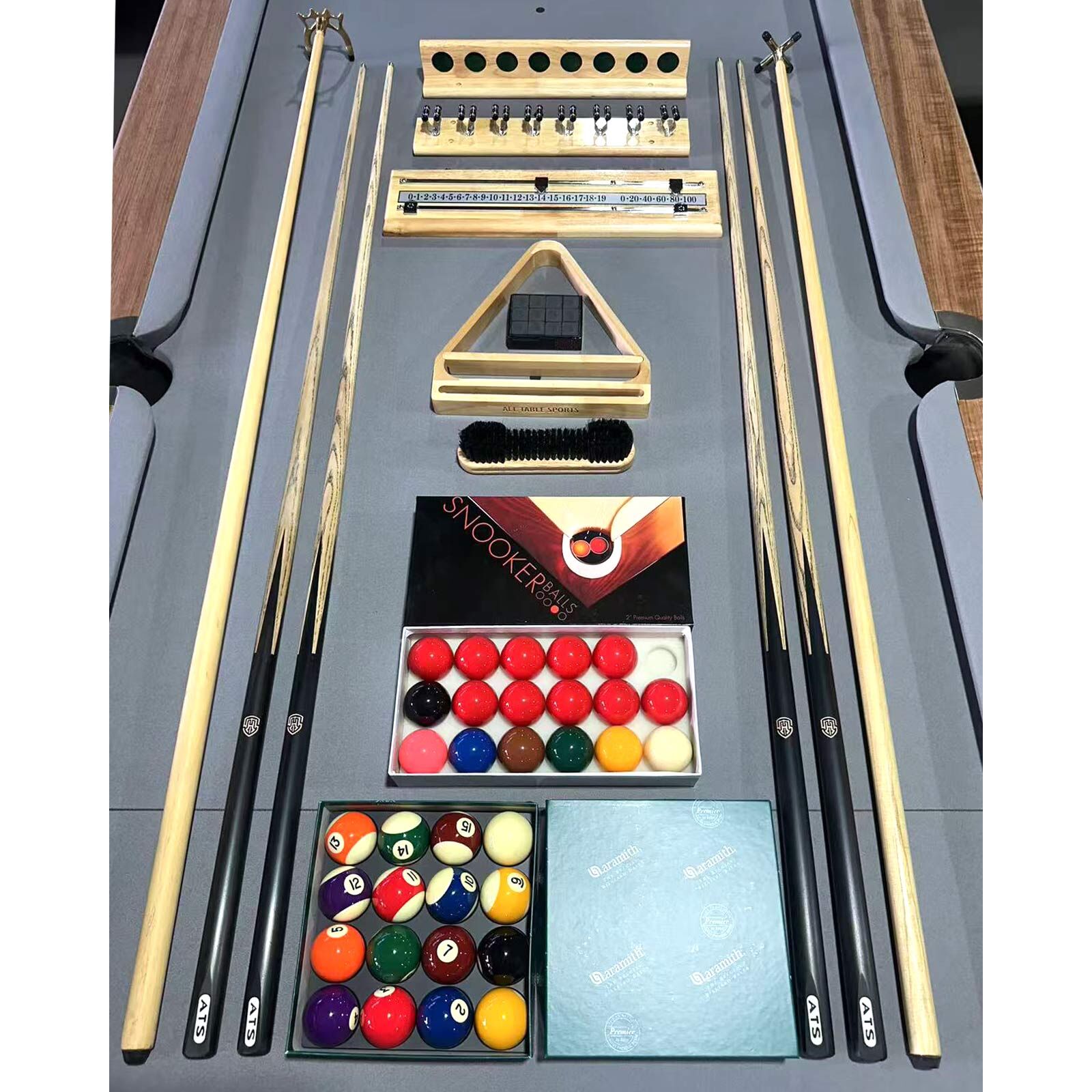 If you have a beautiful slate pool table, without top-quality accessories such as pro cues and balls, you only have part of the enjoyment on your games, introduce a professional package packed with 4 professional cues and high-quality Riley brand pool ball and snooker balls, you will glad about your first break.